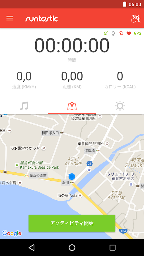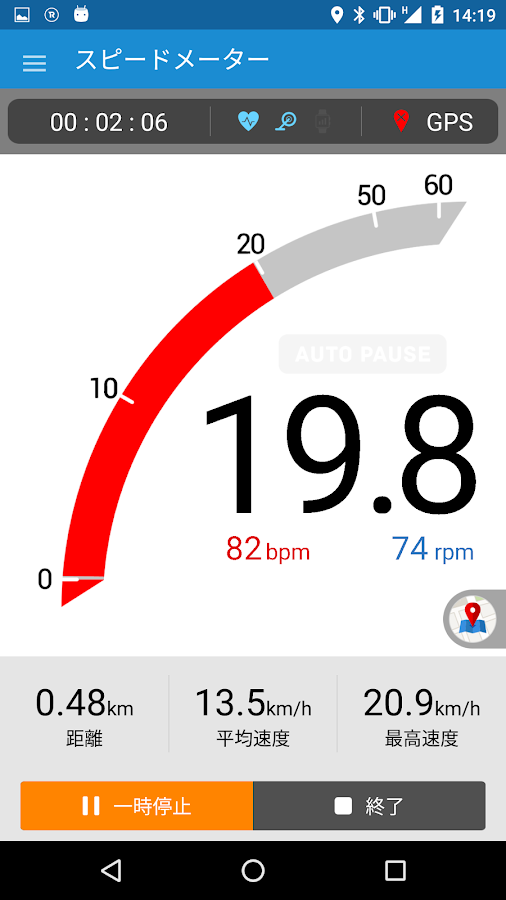 スピードメーター単体の見た目は OpenRiderが好みだったけど、Runtasticはスピード表示と地図表示が一画面で表示できたんでRuntasticに。